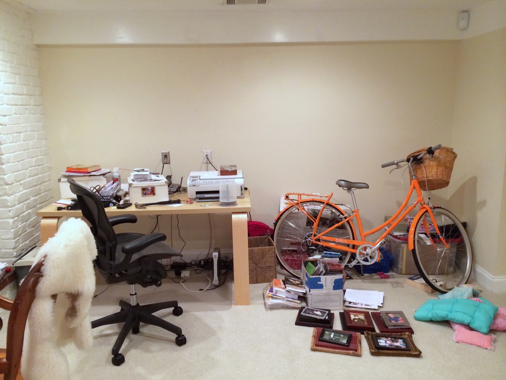 I clearly cursed myself when I told you last week about all the awesome progress I’d made carving out a real, grown-up, home office space for myself in our downstairs living room. As you can see from this photo, I’ve had a bit of a setback. Well, OK…a major setback.